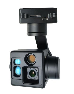 This product is a three-sensor three-axis stabilization small optical pod that integrates two visible light cameras, one with a 25mm focal length of 8 mega pixel, and one with a 6mm focal length of 2 mega pixel. It supports 9x digital zoom and 1200-meter laser rangefinder. The pod uses network IP and HDMI dual output, which has the characteristics of high stability, small size, light weight and low power consumption; the system supports network RTSP code stream output, and the two video streams can be combined and output in picture-in-picture, supporting a variety of picture in picture modes, supporting local TF card 2-ways recording and photography, one channel is 4K, the other is 1080P. UART, network, and S.BUS can all control the camera and gimbal.